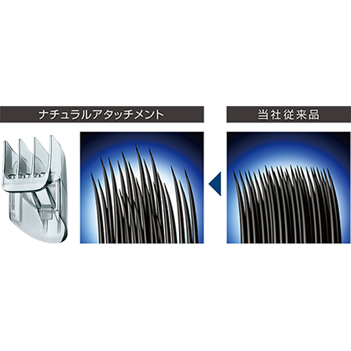 ※1 パナソニック社2011年発売ER-GC50に対して刃を肌に垂直にあてたカットにおいて、カット後の毛の短さとの比較(パナソニック調べ、パナソニック独自基準に基づく)。