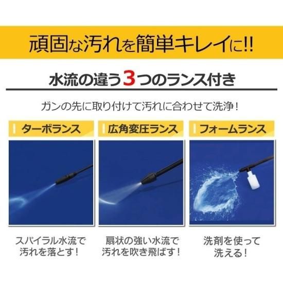 業界最高圧力で噴射される水流により、ガンコな汚れを洗い流す高圧洗浄機です♪