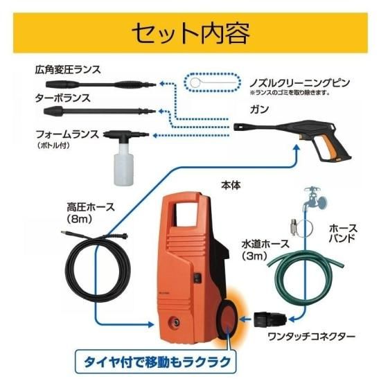 高圧ホース(8m)、水道ホース(3m)、ワンタッチコネクター