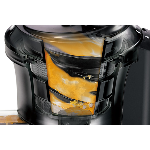 スクリューをゆっくりていねいに回転させて、食材を圧縮しながらすりつぶすことで、栄養豊富なコールドプレスジュースが作れます。