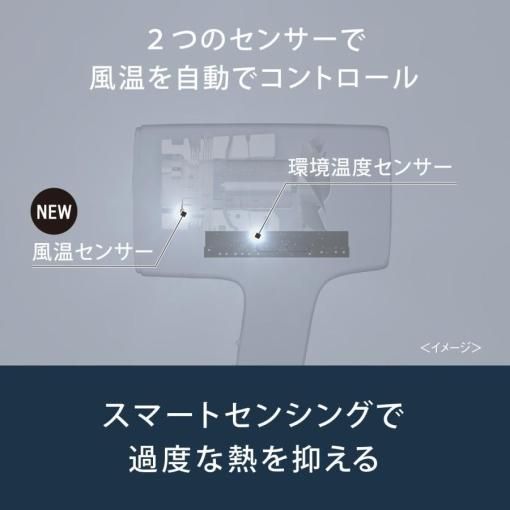 2つのセンサーが、環境や使い方を検知して、自動で風温をコントロールし、過度な熱を抑えます。(常時、風温と室温を検知しています)