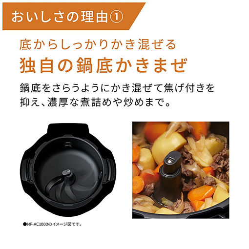 ■独自の「鍋底かきまぜ」を搭載した自動調理鍋。