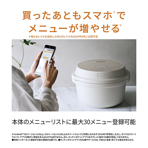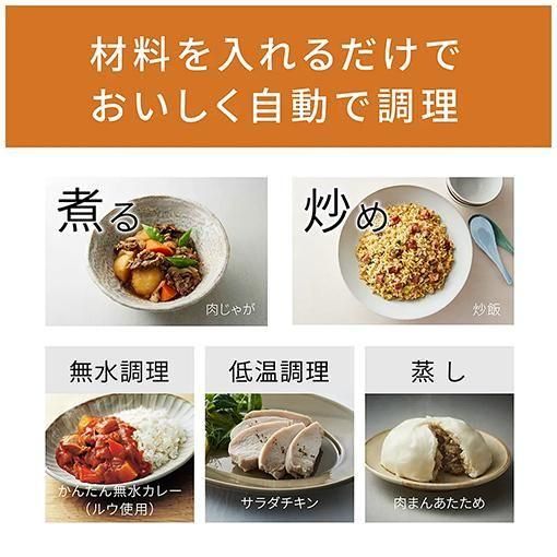 食材のおいしさと栄養をまるごと活かす無水調理をはじめ、低温調理や蒸し調理、スイーツまで、おまかせで作れる。