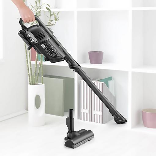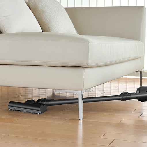 1.3kgの軽量ボディに加え、重心バランスがよく軸がブレにくい本体と、小回りがきく吸込口で、さらに快適にお掃除できます。