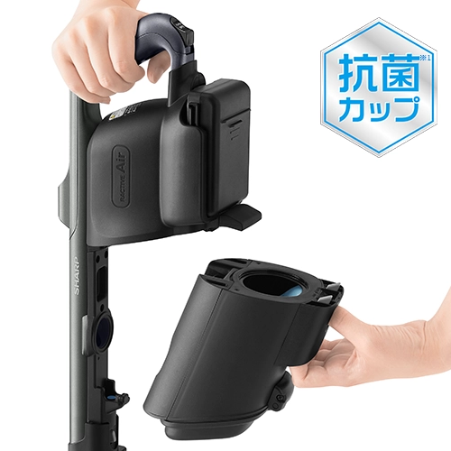 抗菌加工ダストカップに紙パックを装着する「パックinカップ」構造だから、紙パックにさわらずボタンを押すだけでごみ捨てが可能。また、新しい紙パックの装着もラクに行え、本体から外したダストカップはまるごと水洗いできます。