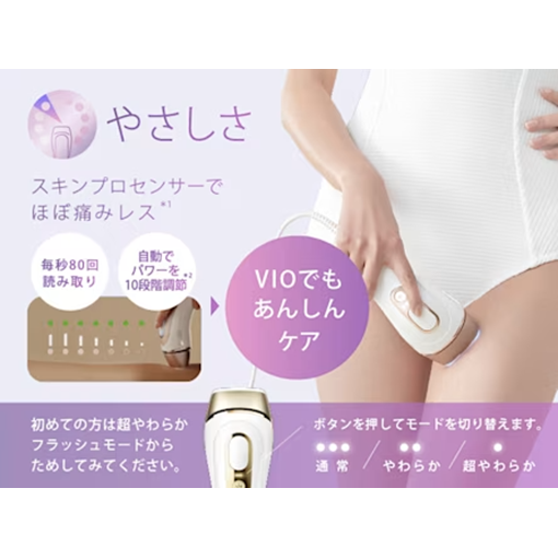 やさしさ肌をまもるスキンプロセンサー搭載でほぼ痛みレス
