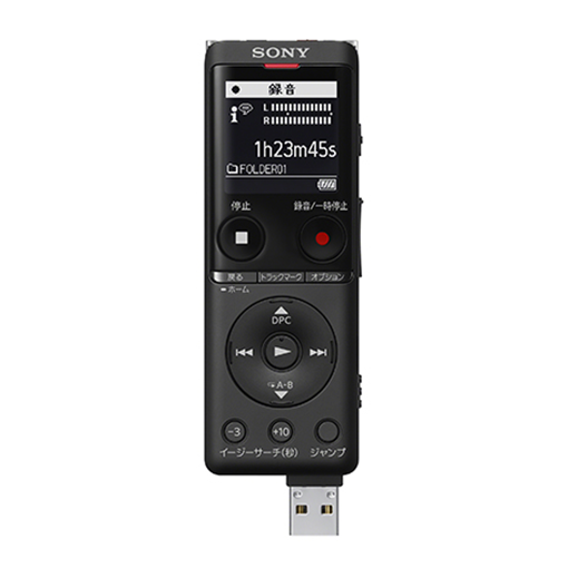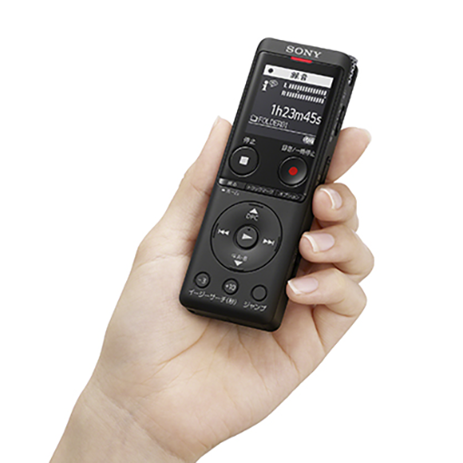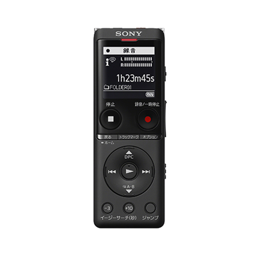 長時間録音したファイルの聞きたいところを素早く見つけるのに便利な「タイムジャンプ」、ボタンひとつで早送り(+10秒)/早戻し(-3秒)が可能「イージーサーチ」、小さく録音されてしまった場合も、録音ファイルの最大音量箇所が音割れしない範囲まで全体的に音量レベルを上げる「ノーマライズ」など、再生機能も充実しています。