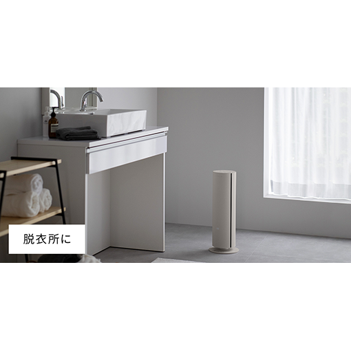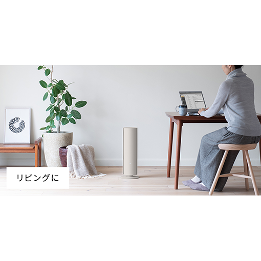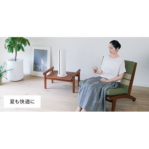本体近くを流れる空気を、本体に沿って引き込む「コアンダ効果」を活用。左右のスリットから本体の形状に沿って風を送り、前面でぶつけることで広範囲をやさしく包み込む気流を生み出します。