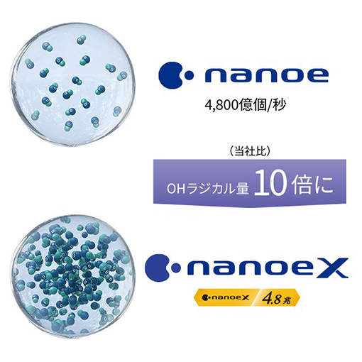 効果の決め手、「OHラジカル」の濃度が従来のナノイーから10倍にアップ。