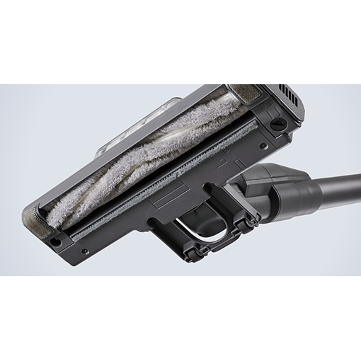 超密集ブラシで、すき間に入り込まずに毛を巻き上げます。V字構造で中央に毛を集め、最終的にリブでそぎ落とすことで、ブラシにからまずに吸引されます。