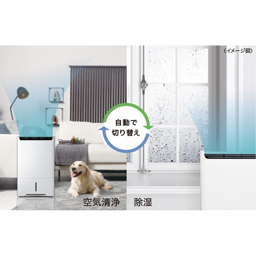 1台で除湿・空気清浄・脱臭の3機能を備えているので場所を取らず、さらに季節ごとの出し入れも要らない。花粉やジメジメや結露、空気の汚れやニオイなど、これ1台で24時間365日「空間ケア」できるから、家族のしあわせな時間をサポートします。