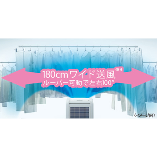 部屋干しおまかせムーブアイと3次元広角狙えルーバーで、干し方、干す場所に最適な風を送り、しっかり乾燥。